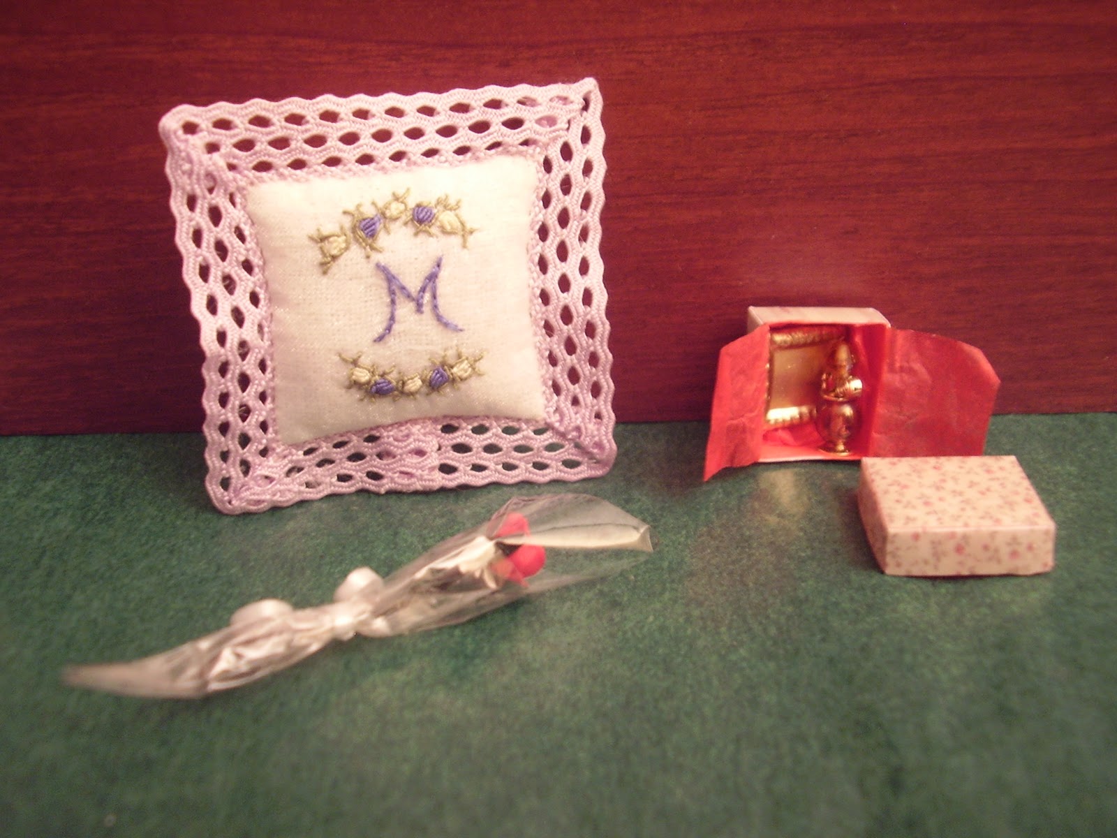 Como ya os dije fui la afortunada en el sorteo que hizo Julia en su blog (http://elminimundodeyuli.blogspot.com/). Además de lo que sorteaba, que estaba hecho por su madre, me envió un cojín hecho por ella, que como podreis ver es una monada: