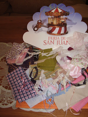 Este regalo me lo ha enviado Aleaitor: Toda una colección de telitas, puntillas y cintas para mi proyecto de mercería. Yo le había comentado, hace tiempo, que quería hacer una mercería en mi casita Roma y ella, desinteresadamente, me ha enviado todo esto: